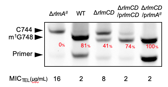 以上より、RlmCDはRlmAIIによるメチル化を促進し、これを介してTEL感受性に関わることが示唆されました。