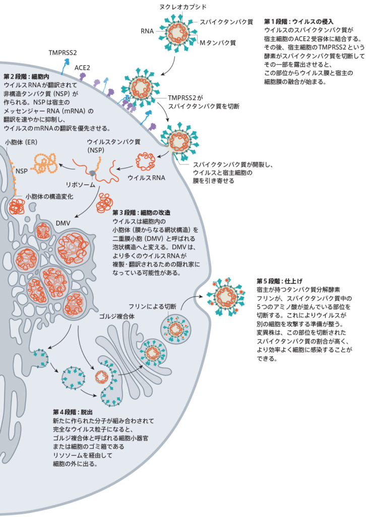 参考までに、新型コロナウイルスの感染メカニズムを下図に示します。