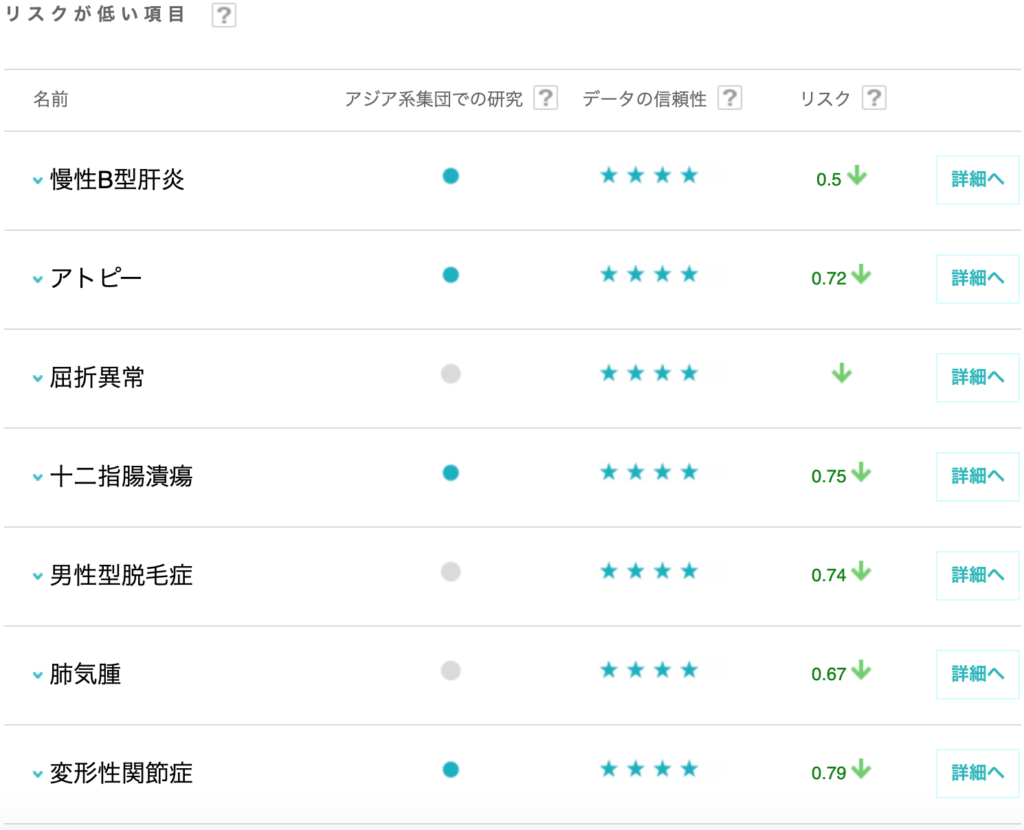 私の遺伝子解析結果