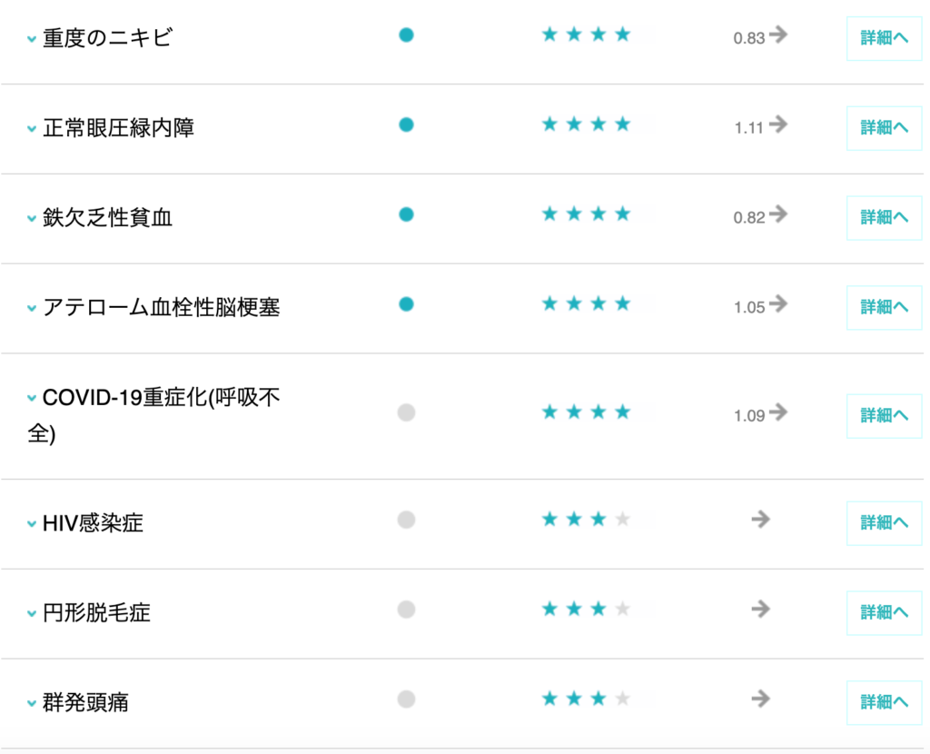 また、一部の疾患については、研究レベルではわかっているのに解析結果には出ていませんでした。