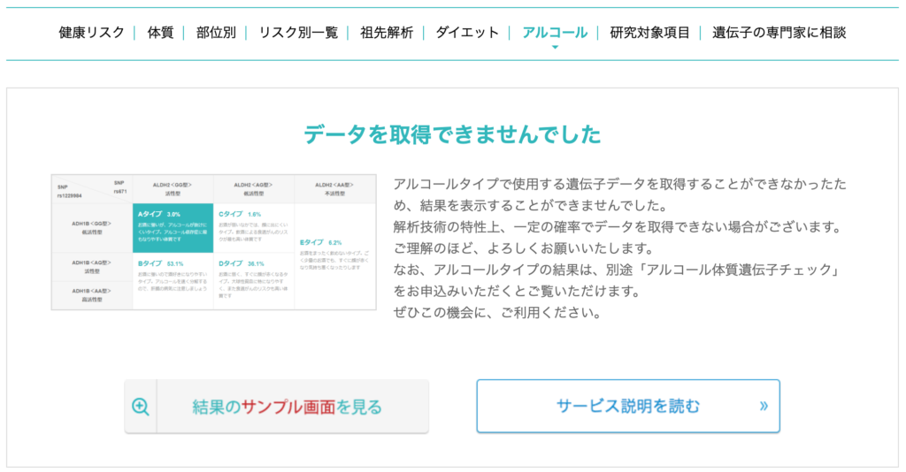 遺伝子解析の実験が必ず上手くいくとは限りません。このように分からなかった項目も出てくることは予め知っておきましょう。