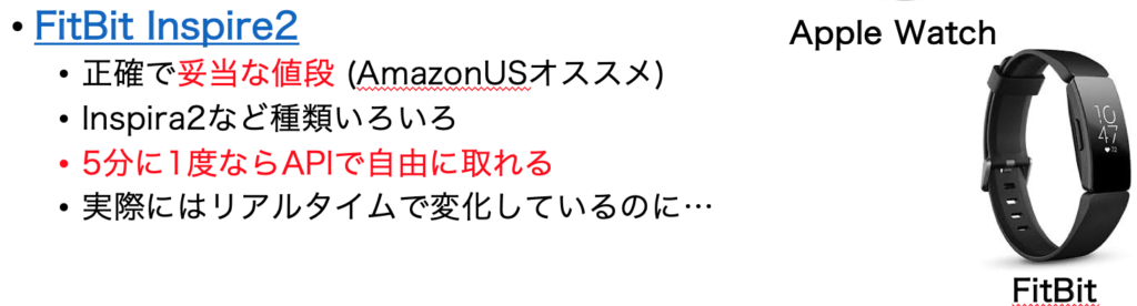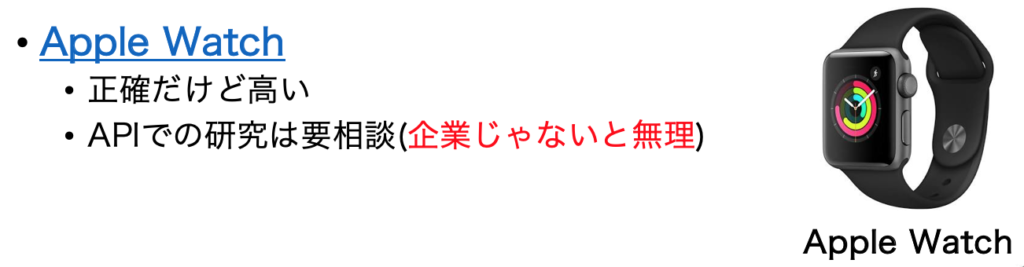 また、Apple Watch側のAPIもないと言っても過言ではなく、データをとって研究するデバイスとしては不向きかもしれません。