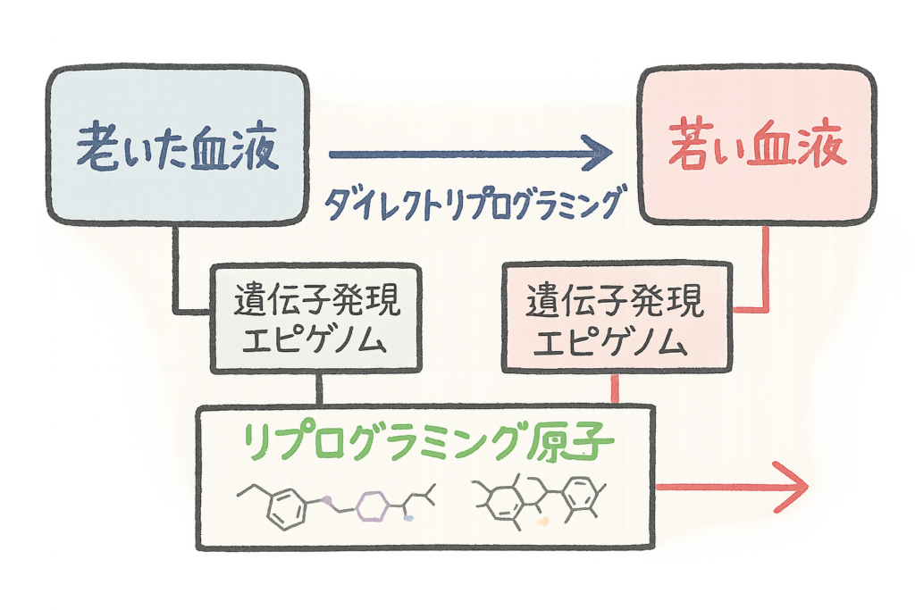 例えば、皮膚の細胞を老化した細胞、多能性幹細胞を若い細胞と置き換えることで、若返るために操作が必要な遺伝子が明らかになると期待されています。このように幹細胞を介さずに直接目的の状態へ変換する方法は特に「ダイレクトリプログラミング(DR)」と呼ばれています。