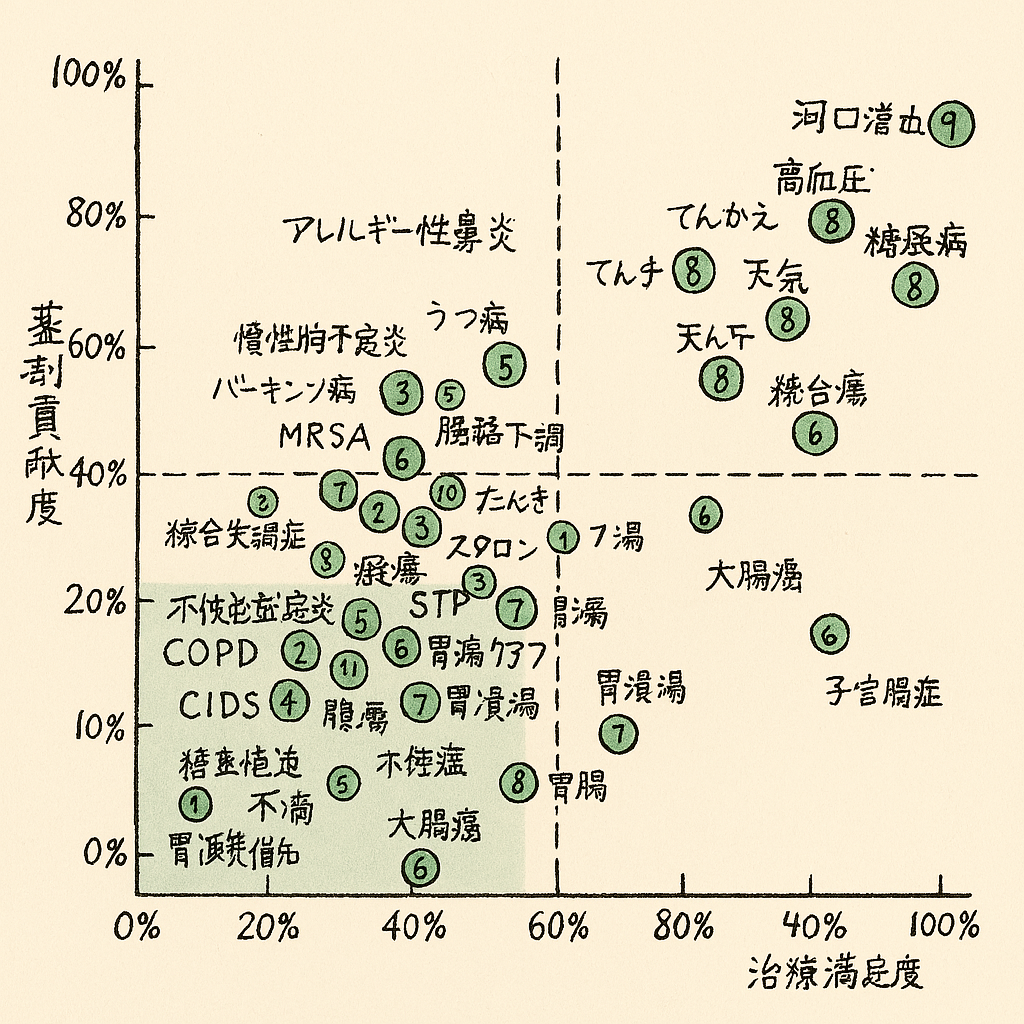 罹患者数が多い一方で治療法が確立されていない疾患群を Unmet Medical Needs (UMN) と呼びます。抗生物質が未発見であった時代では感染症が主なUMNでした。現代においてはがんが主なUMNですが、医療の発展に伴い徐々に克服されつつあり、数年後の主なUMNは発達障害・うつ・認知症などの脳に起因する「精神神経疾患」や、それが克服された後の「老化」に変化すると推測されています。