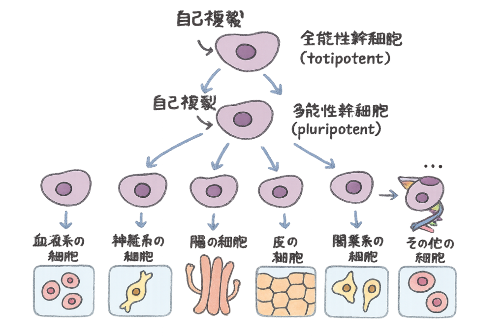イモリの手足は再生できてもヒトではできません。その理由は多能性幹細胞の有無です。多能性幹細胞はどんな細胞にも分化できますが、ヒトには多能性幹細胞がほぼ存在しません。